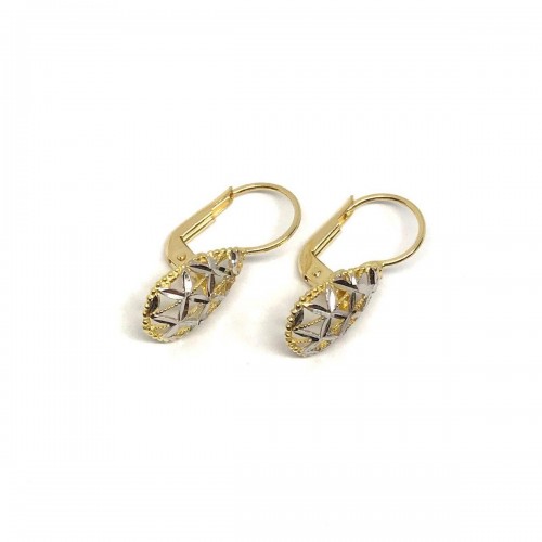 Orecchini PVZ in oro bianco e giallo 18 kt con elemento a goccia e lavorazione diamantata