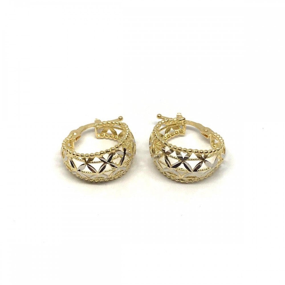 Orecchini PVZ in oro bianco e giallo 18 kt con lavorazione diamantata