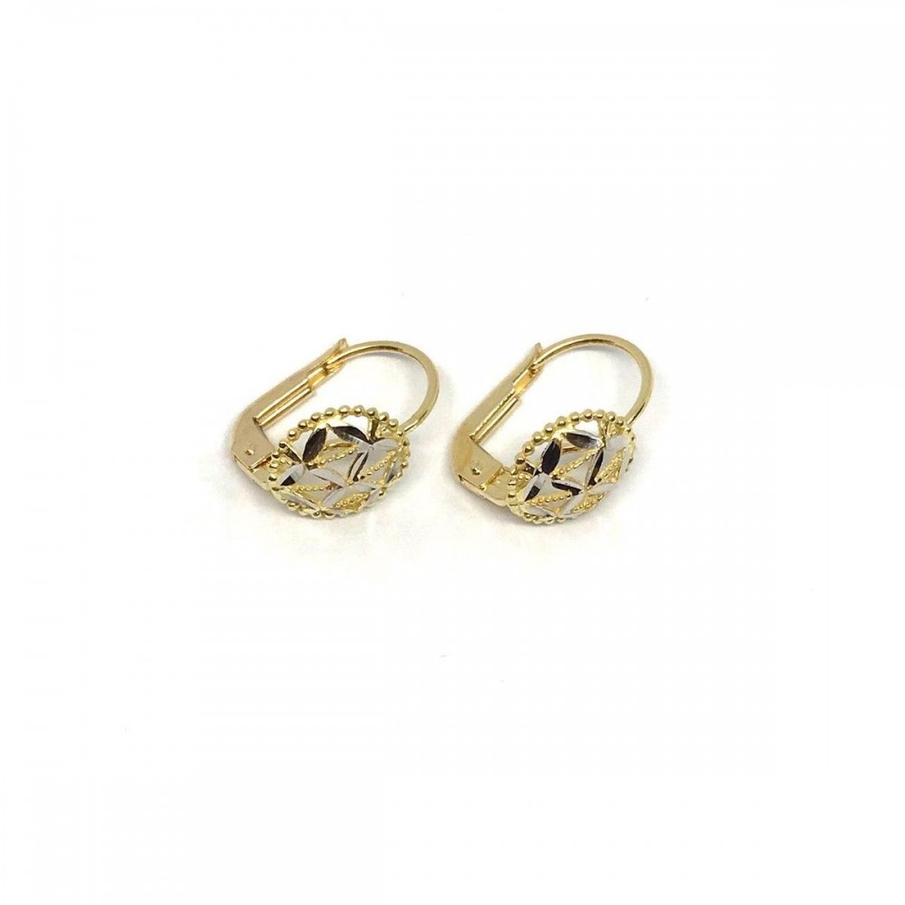 Orecchini PVZ in oro bianco e giallo 18 kt con elemento rotondo e lavorazione diamantata