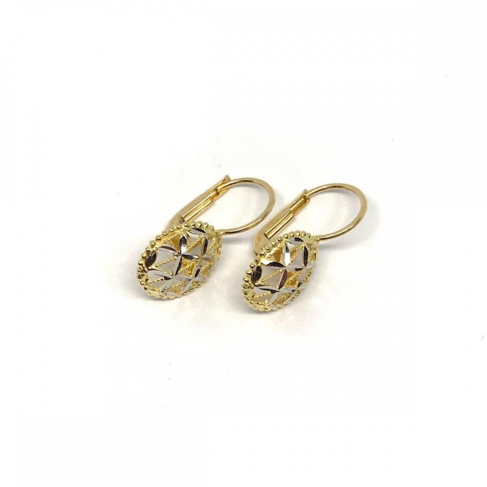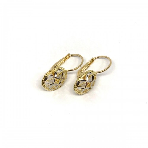 Orecchini PVZ in oro bianco e giallo 18 kt con elemento ovale e lavorazione diamantata
