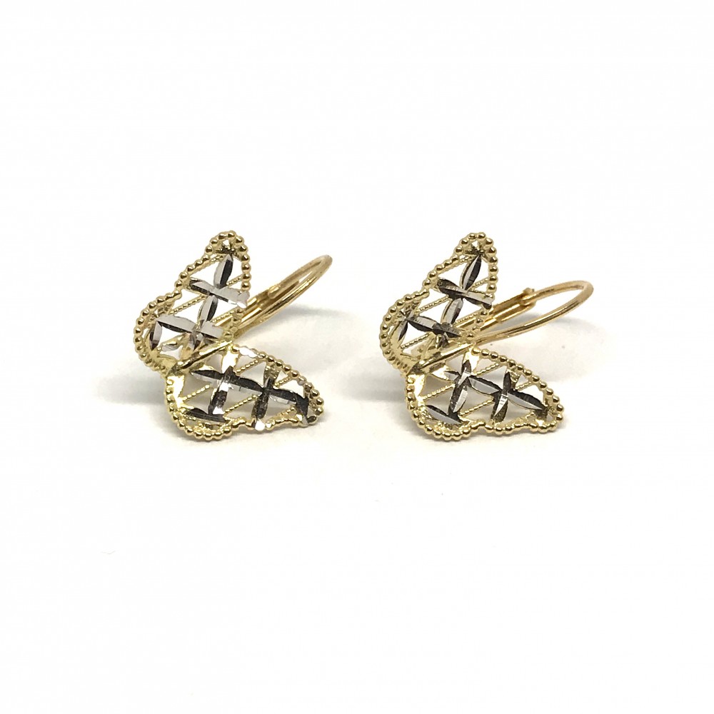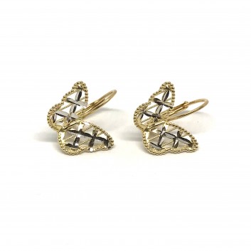 Orecchini PVZ in oro bianco e giallo 18 kt con elemento a farfalla e lavorazione diamantata