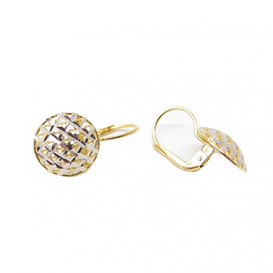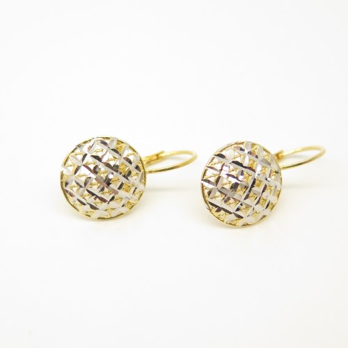 Orecchini PVZ in oro bianco e giallo 18 kt con elemento rotondo e lavorazione diamantata