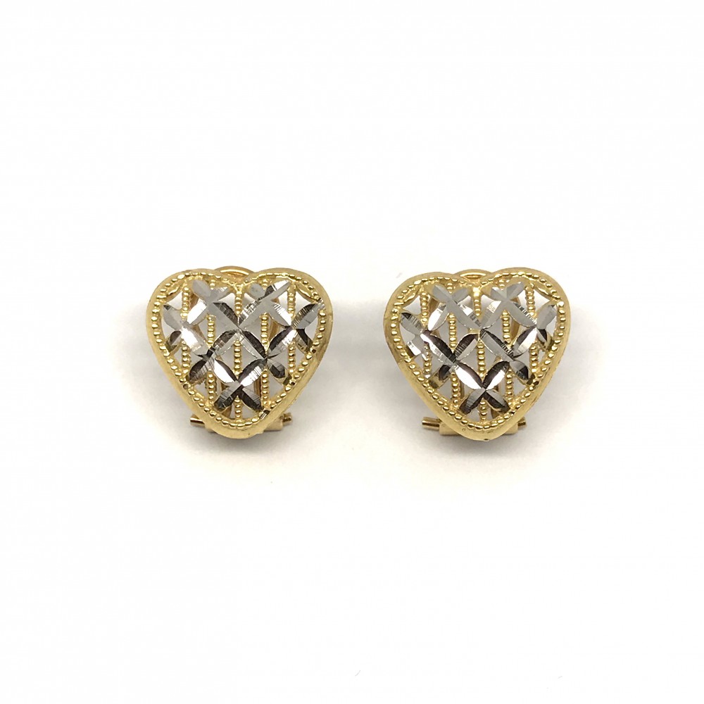 Orecchini PVZ in oro bianco e giallo 18 kt con elemento a cuore e lavorazione diamantata