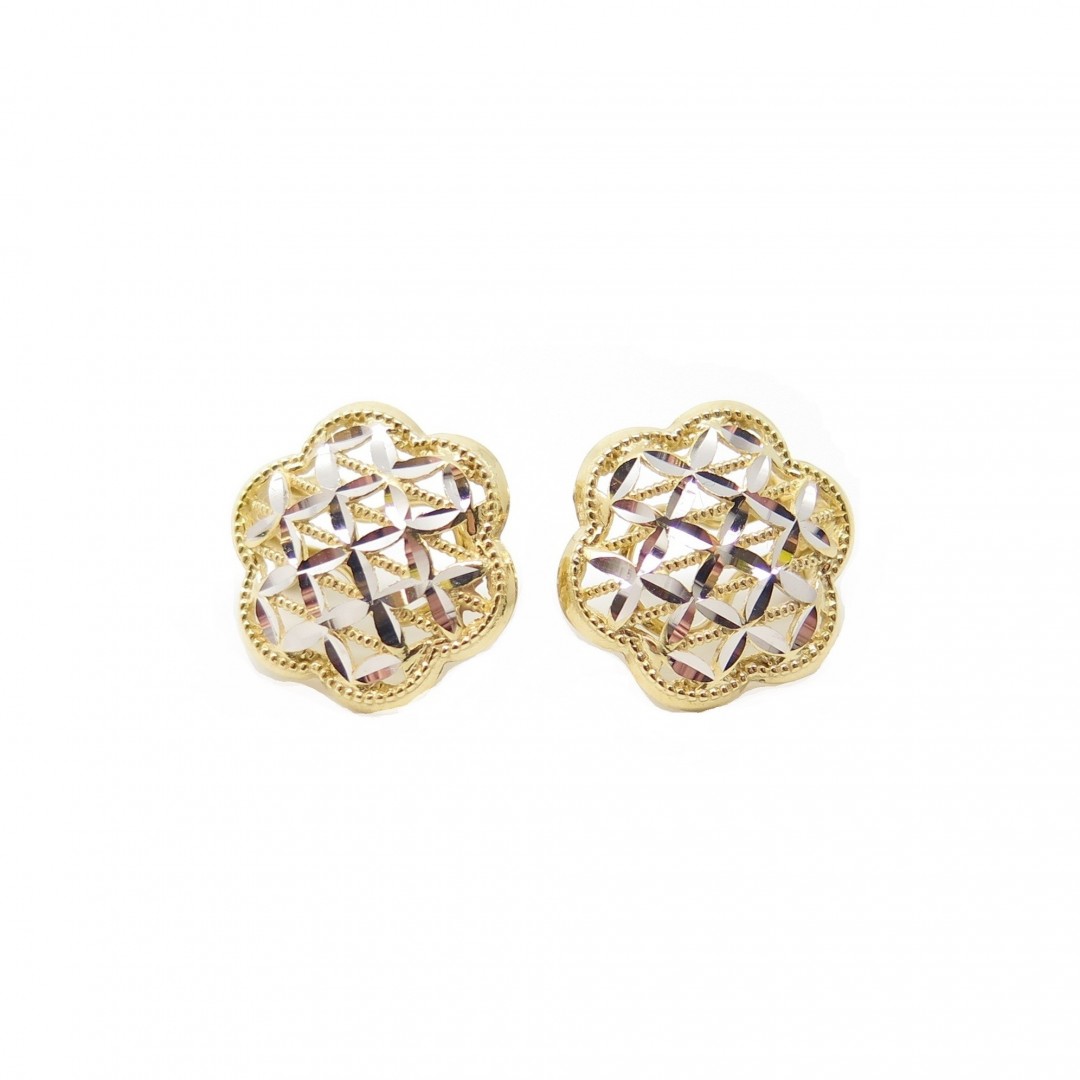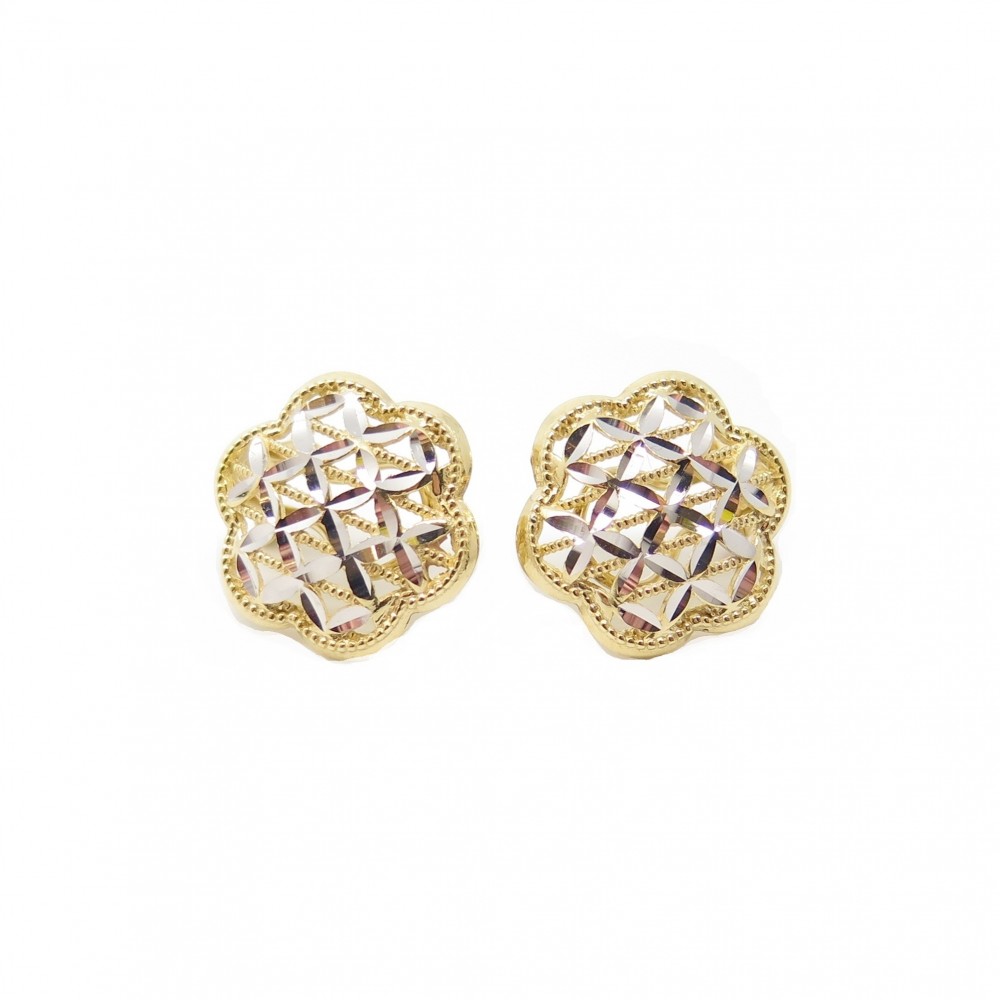 Orecchini PVZ in oro bianco e giallo 18 kt con elemento a fiore e lavorazione diamantata