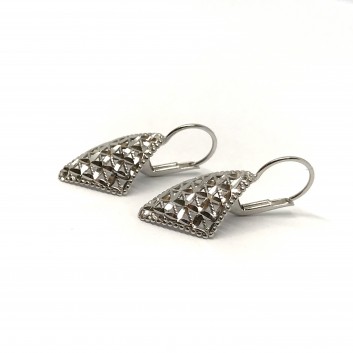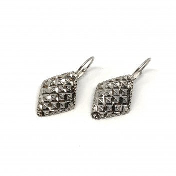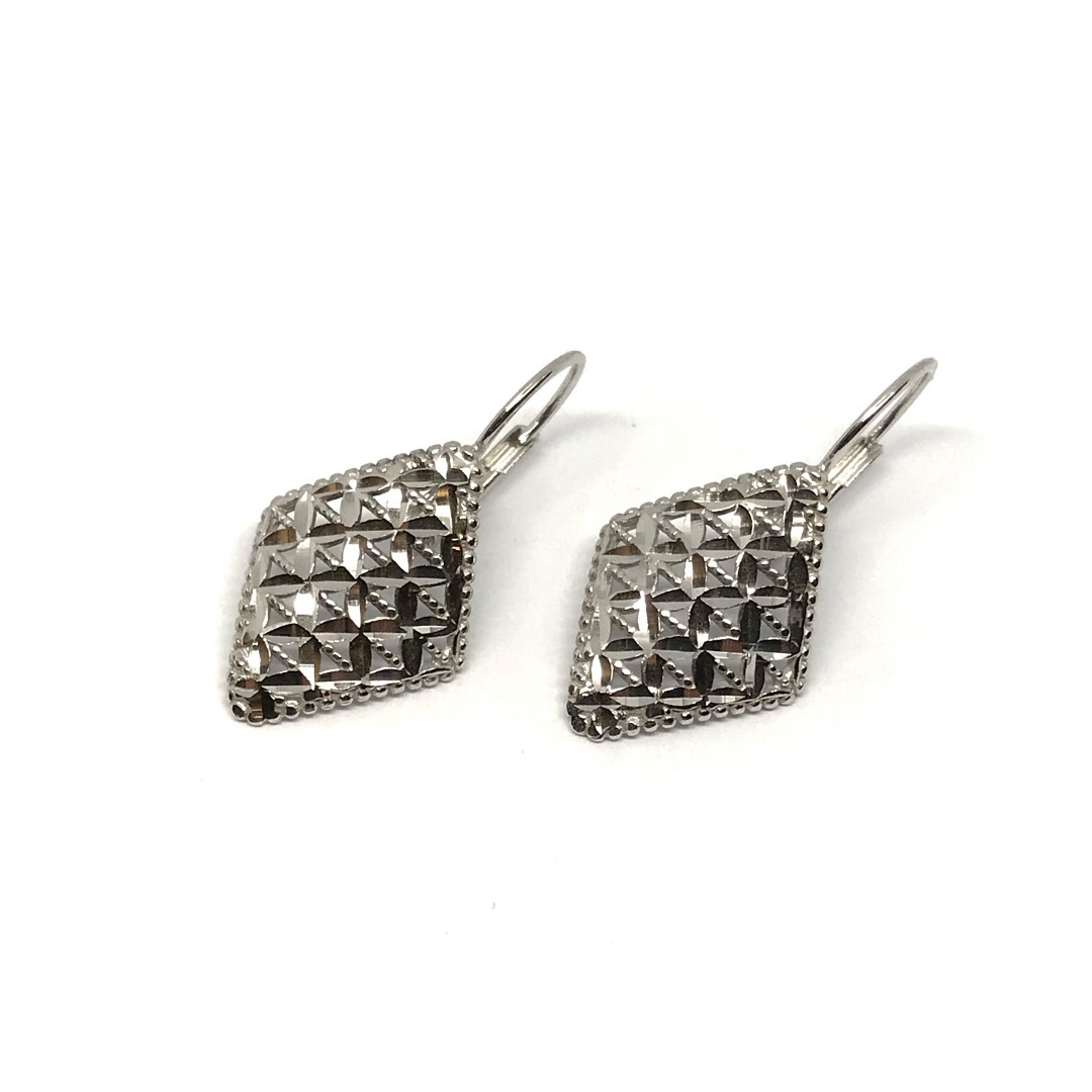 Orecchini PVZ in oro bianco 18 kt con elemento a rombo e lavorazione diamantata
