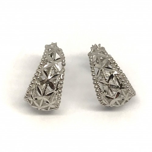 Orecchini PVZ in oro bianco 18 kt con elemento a goccia e lavorazione diamantata