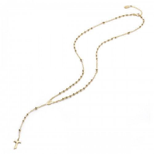 Collana ROSARIO in oro giallo 18kt con medaglia raffigurante San Francesco con il lupo e croce Tau pendente.