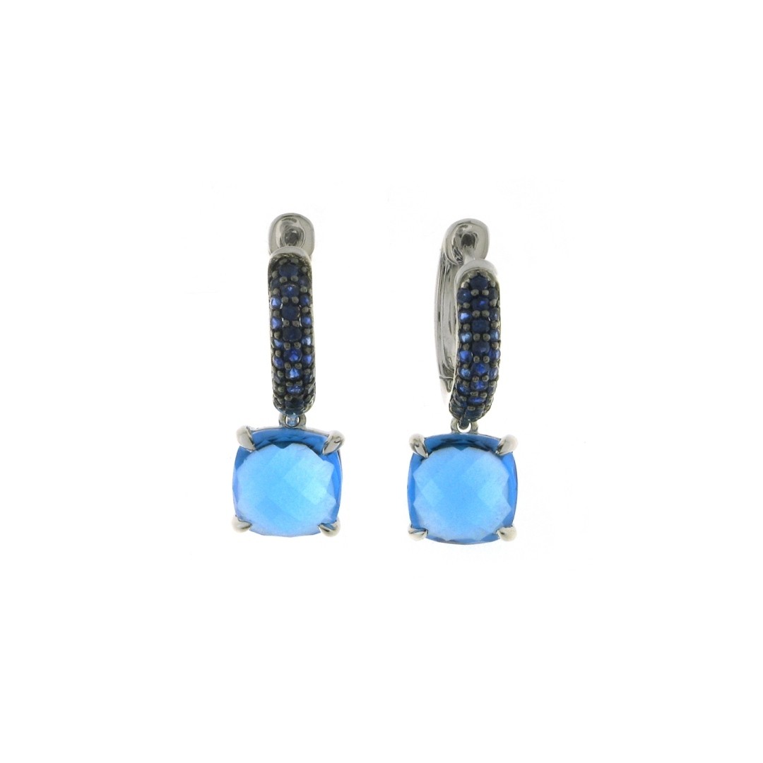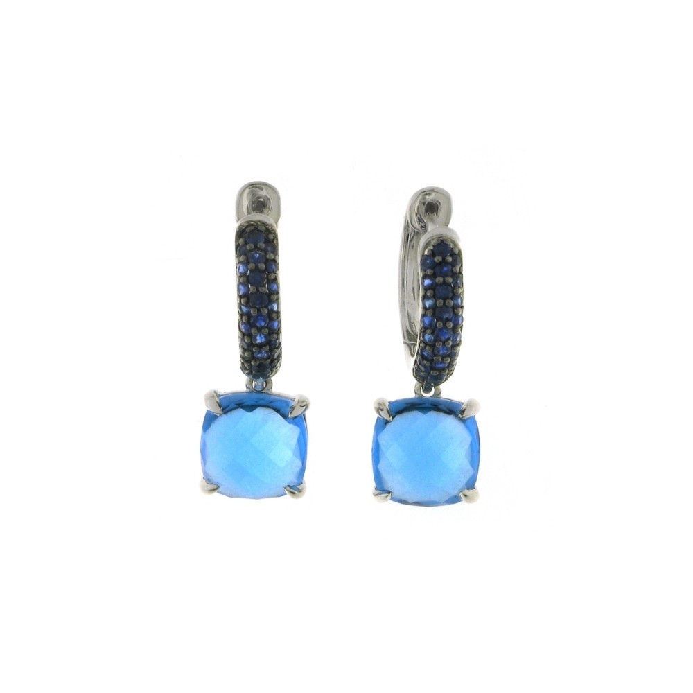 CHIMENTO Orecchini collezione SIBILLA in oro bianco 18 Kt con topazio azzurro sfaccettato ct. 5.50 e pavè di zaffiri blu ct. 0.60