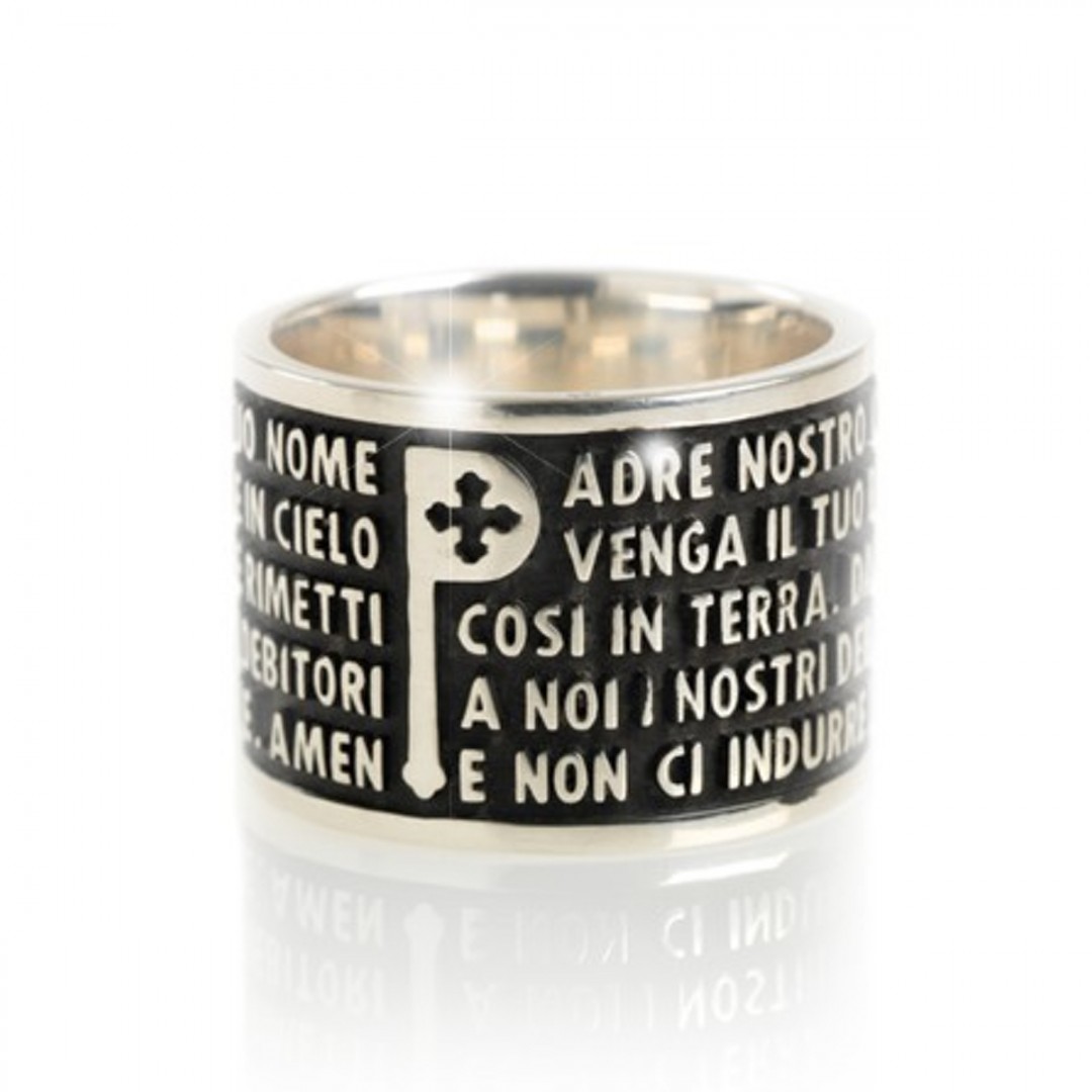 Anello TUUM in argento 925 brunito con preghiera del Padre Nostro in lingua italiana