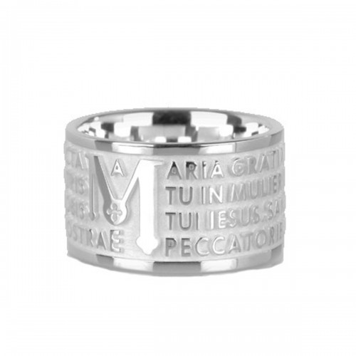 Anello TUAM in argento 925 rodiato con preghiera dell'Ave Maria in lingua latina