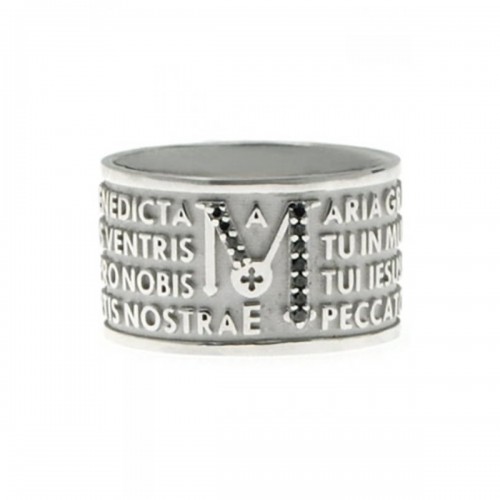 Anello TUAM in argento 925 rodiato con preghiera dell'Ave Maria in lingua latina e diamanti neri.