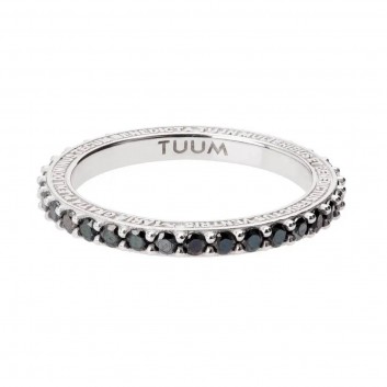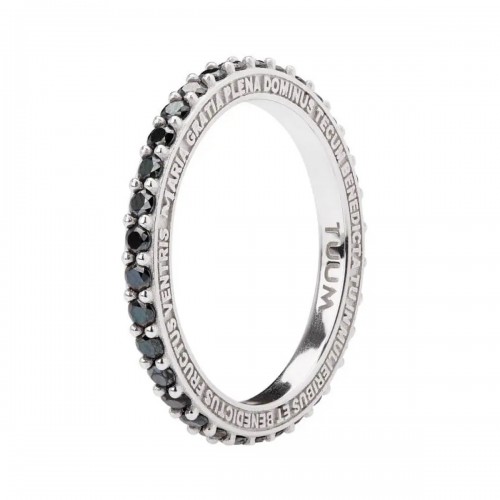 Anello TUAM in argento 925 rodiato con preghiera dell'Ave Maria in lingua latina e diamanti neri.